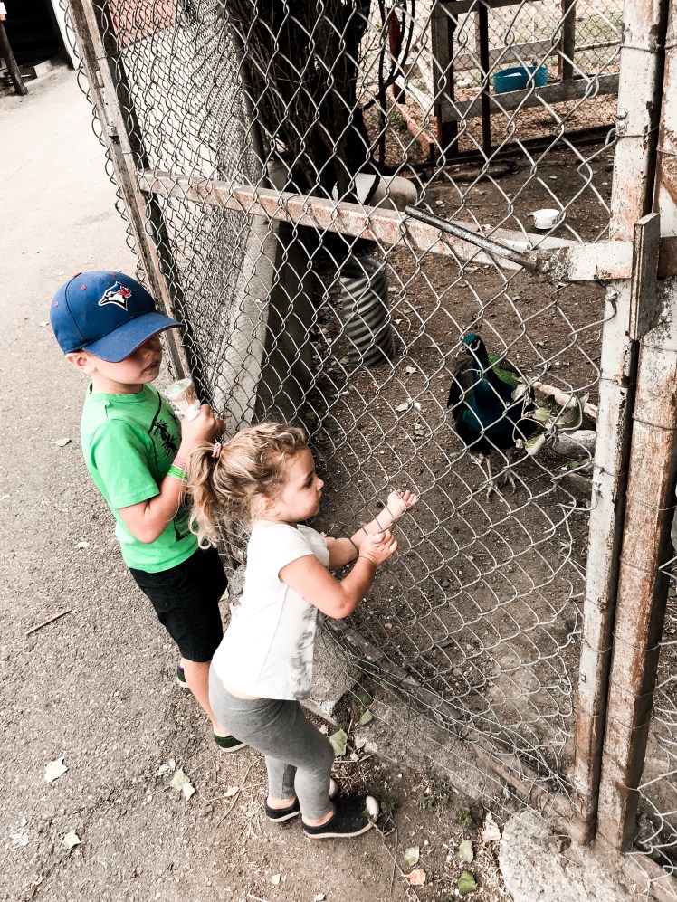 While we munched on our ice cream we took the kids to see the adorable calves, trying to keep the ice cream at least semi clean. I semi-bribed my youngest to stand still for a mini photo shoot with the promise of checking out the big momma cows, which we did directly after that. We then started to walk around and check out the other random farm animals, but as we did, we started to feel a couple drops of rain, so we piled back into the vehicles and headed home, bellies full of bubblegum ice cream, shoes only slightly covered in manure !!