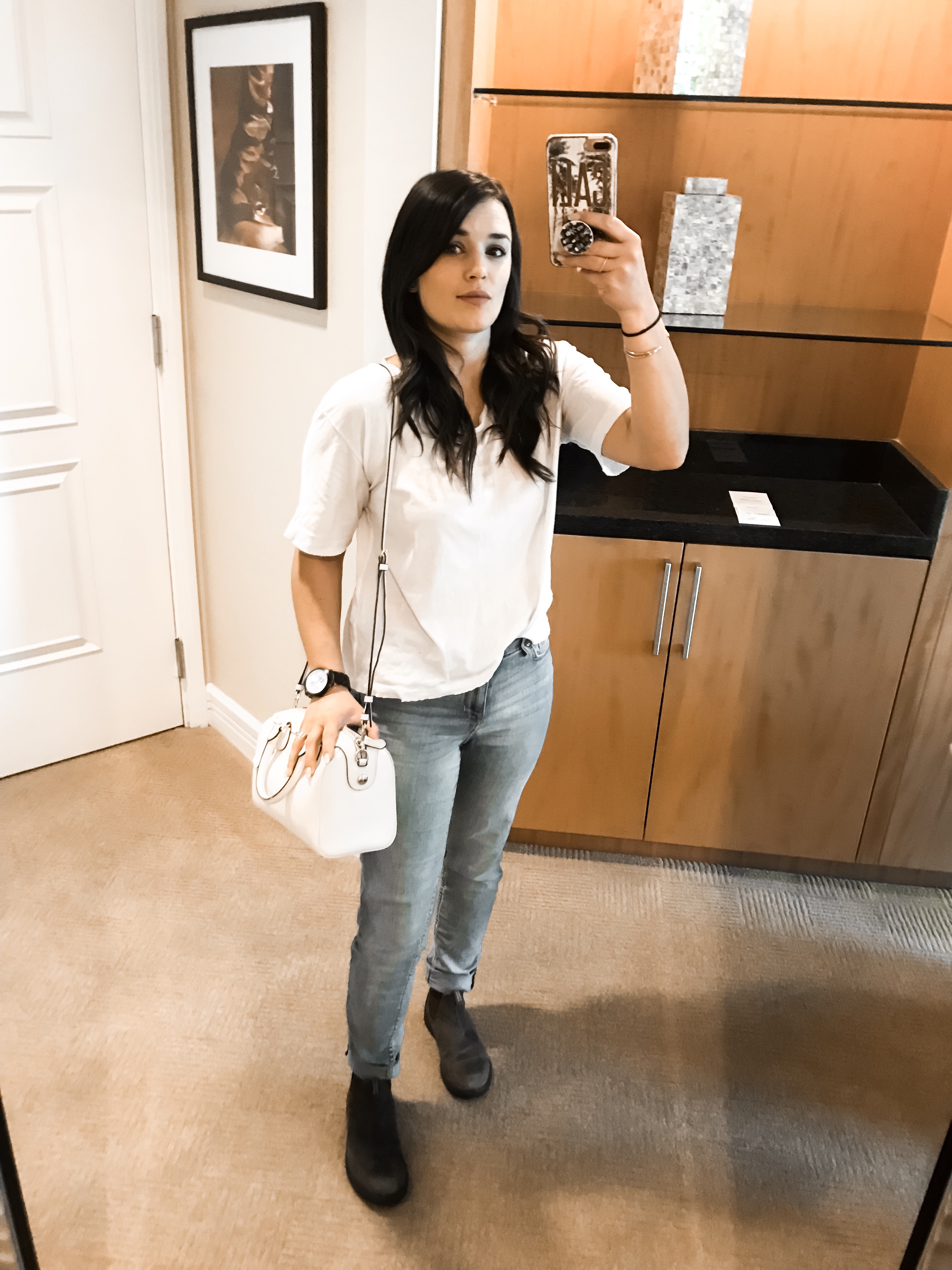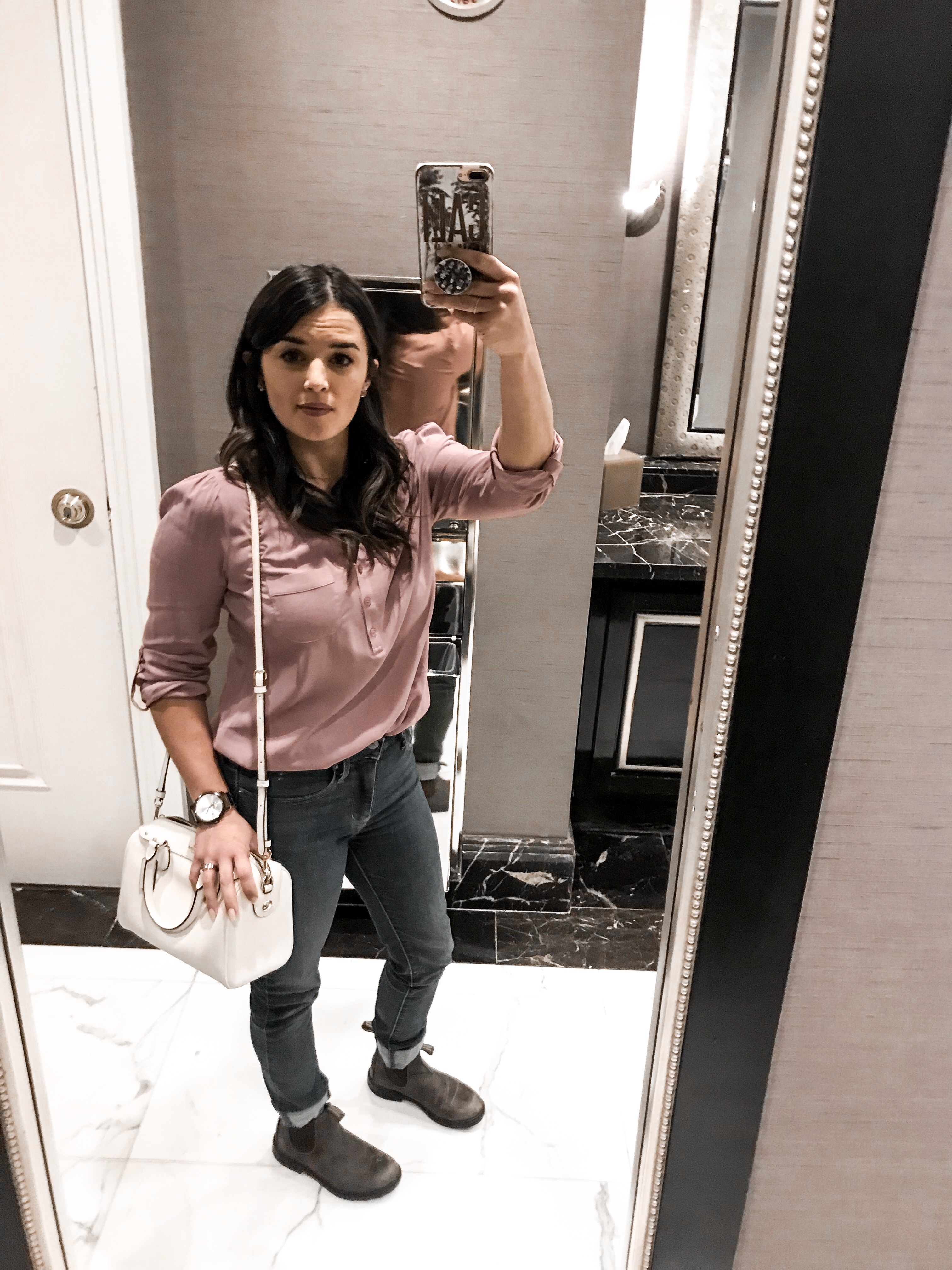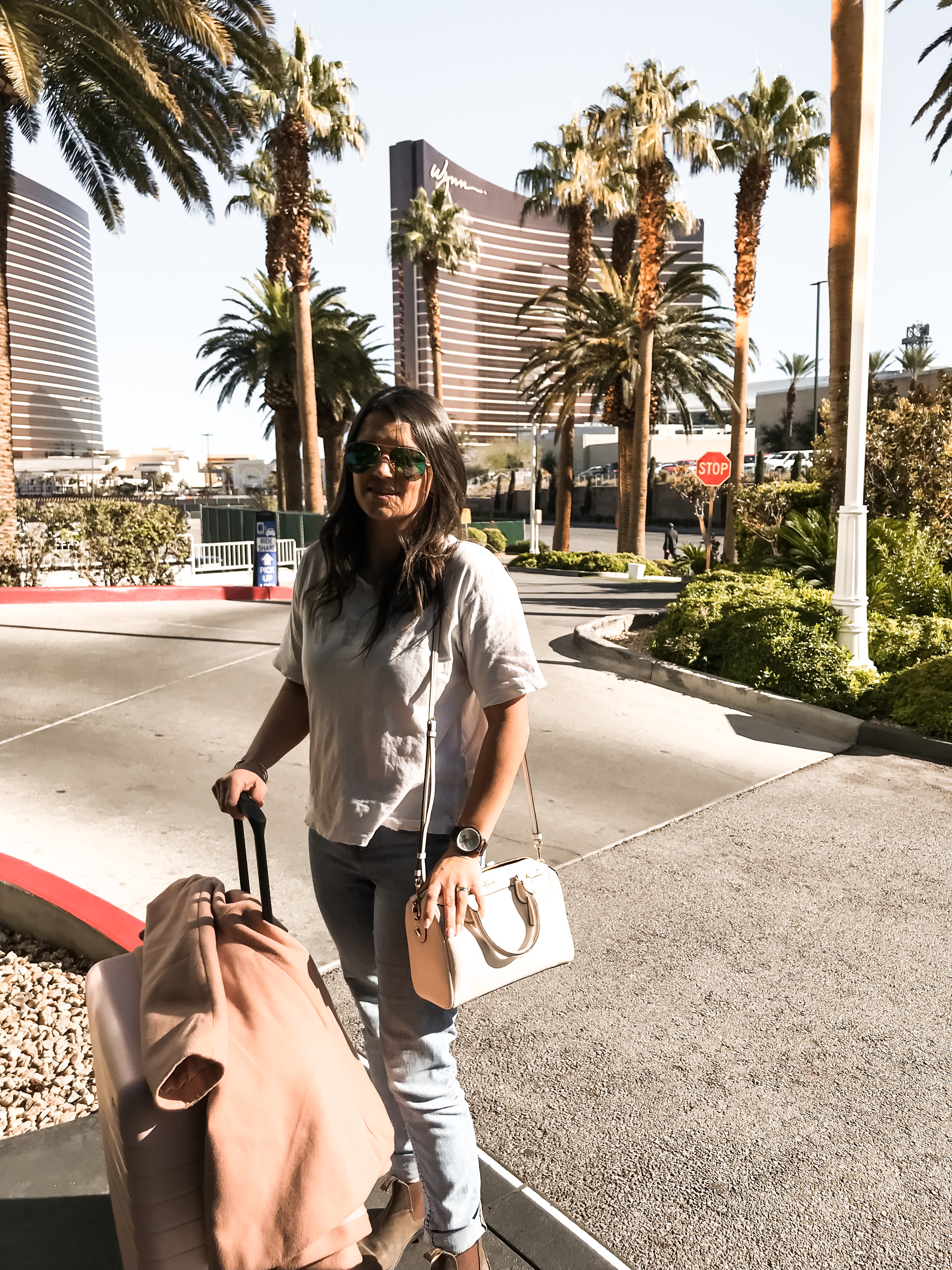 Three weeks ago my hubby and I went to Vegas for work (we were there for World of Concrete … oh so exciting 🙄), which involved spending all day at the concrete show, then rushing back to the hotel to quickly change and head out for a night of business meetings after business meetings (some more fun than others 😬). I loved that I didn’t have to worry about forgetting to change my watch, it literally went with every single outfit I wore !